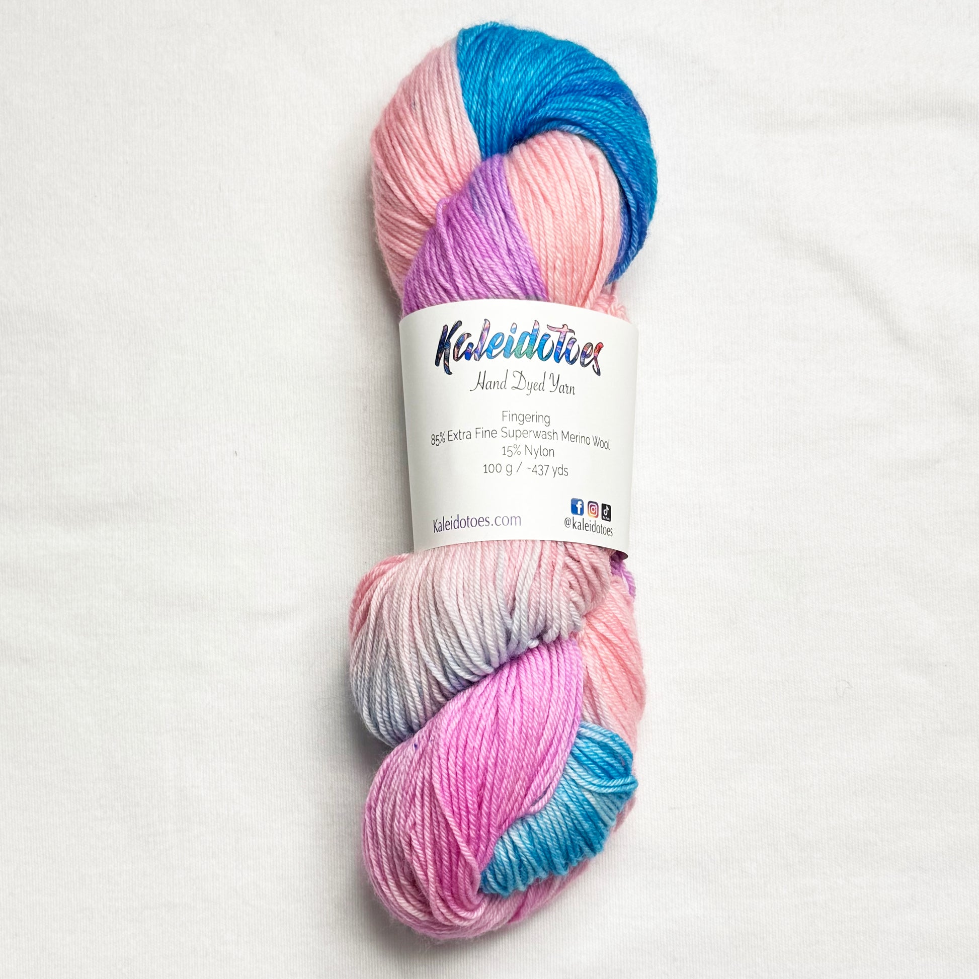 Sweet and whimsical, Sugarplum Princess twirls across the skein in soft pinks and lilac purples, crowned with sparkling touches of turquoise blue. Dreamy and playful, this colorway feels like a fairytale spun into yarn—delicate yet full of lively charm.